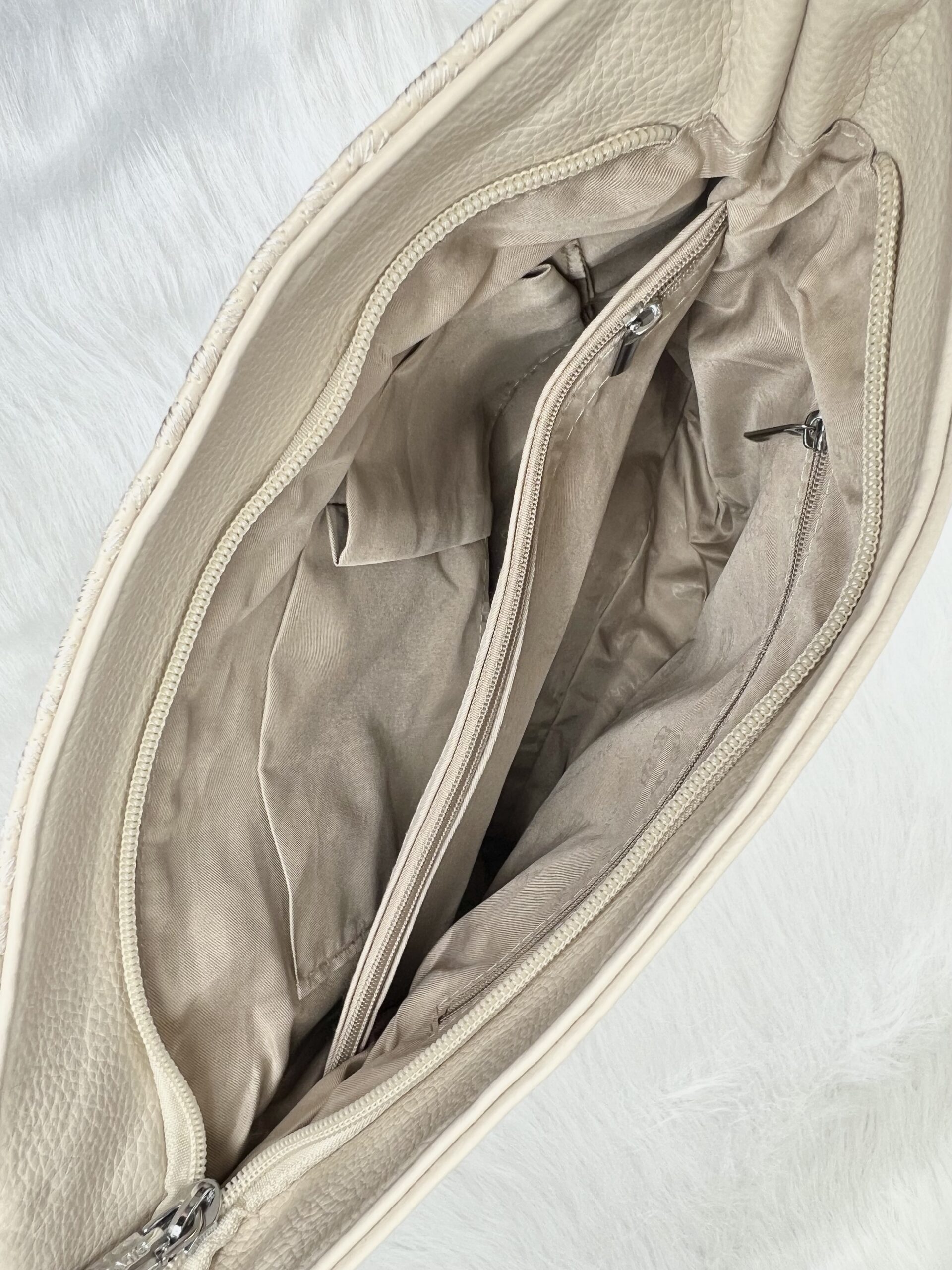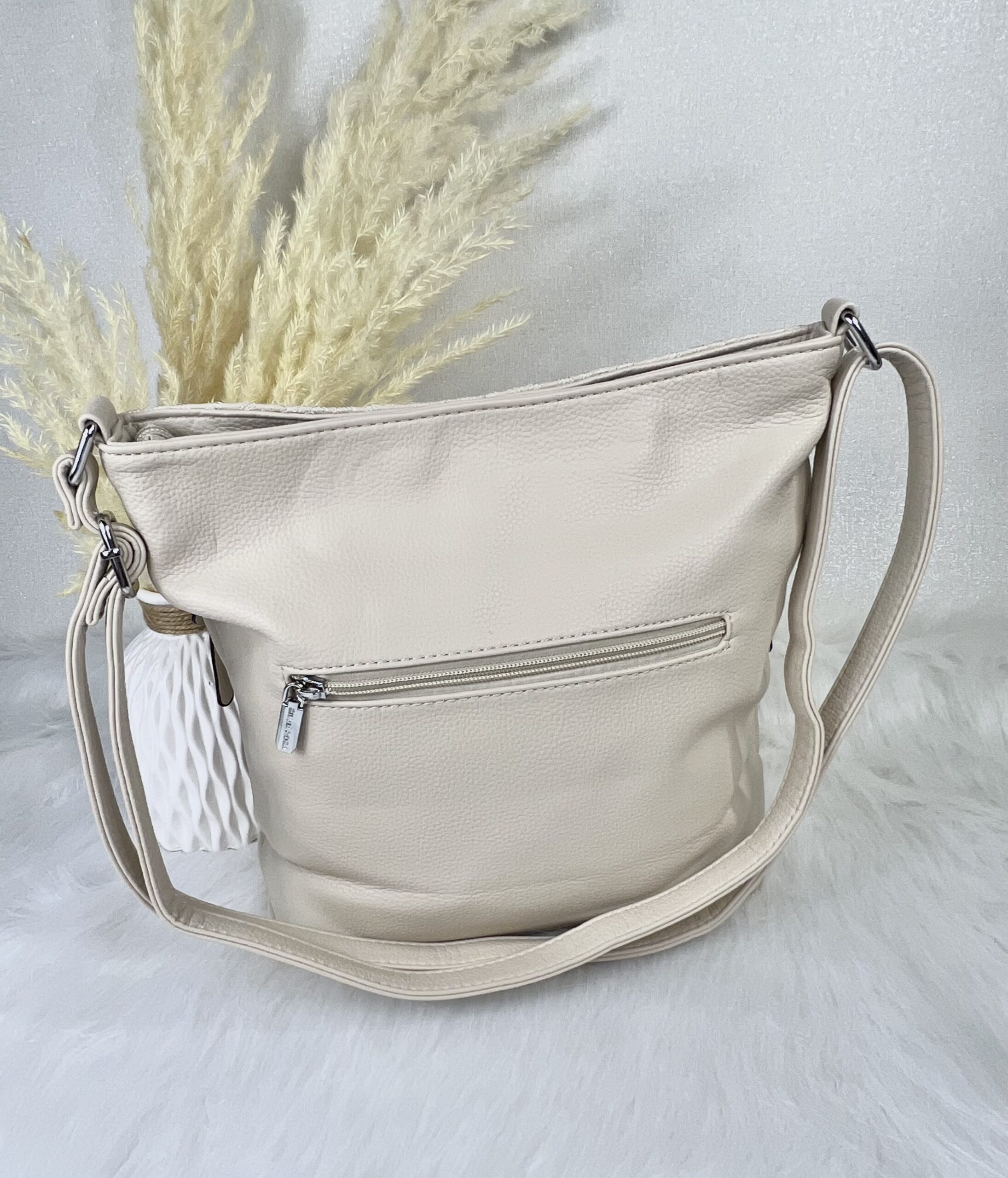 kus ühel pool on üks lukuga küljetasku ning teisel pool kaks lahtist taskut.