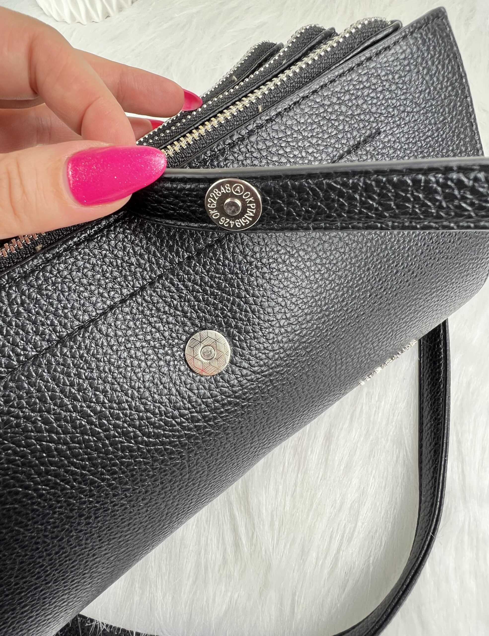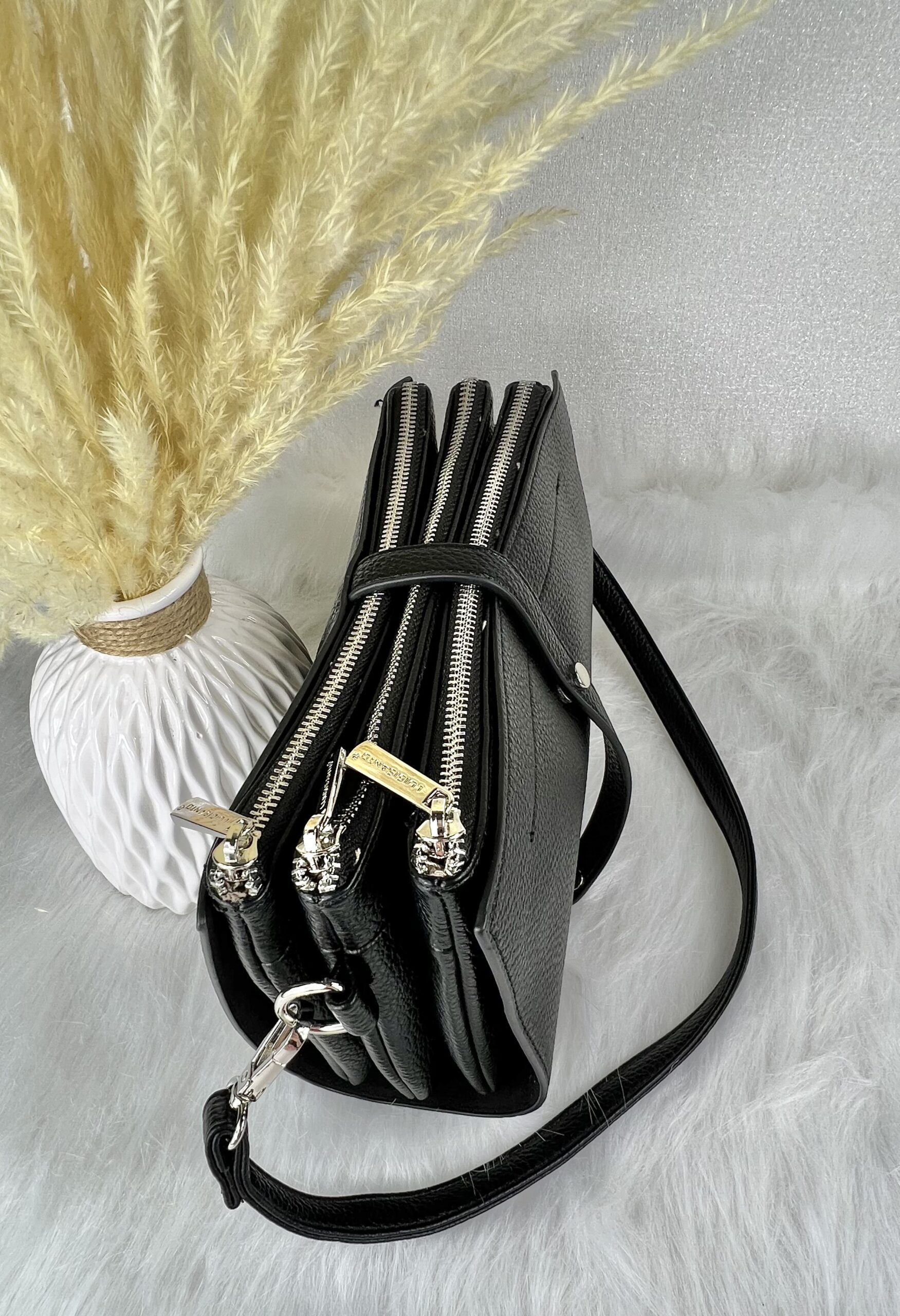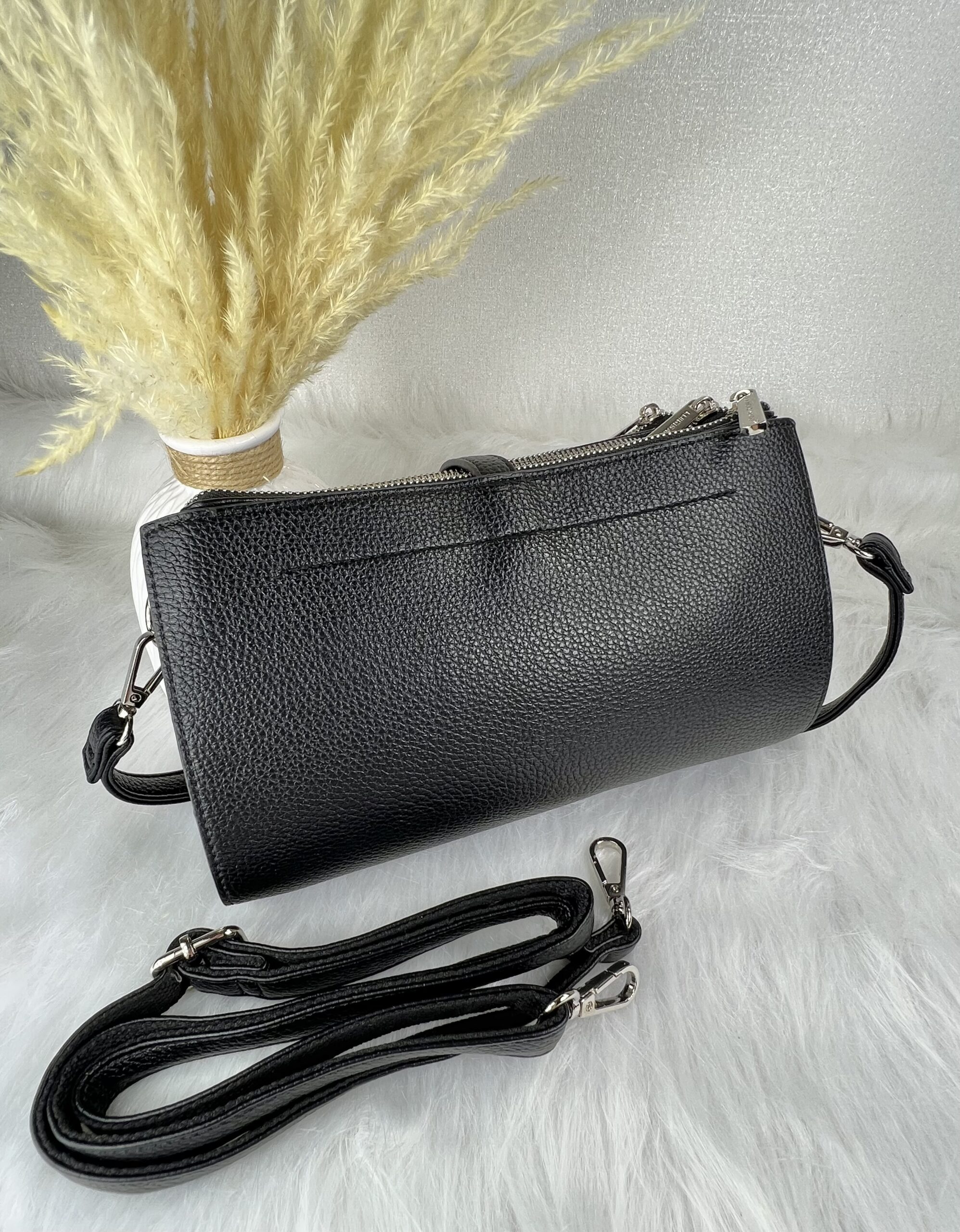 Pehme ja stiilne must kott, mis hoiab kõik vajalikud asjad ilusti korras.