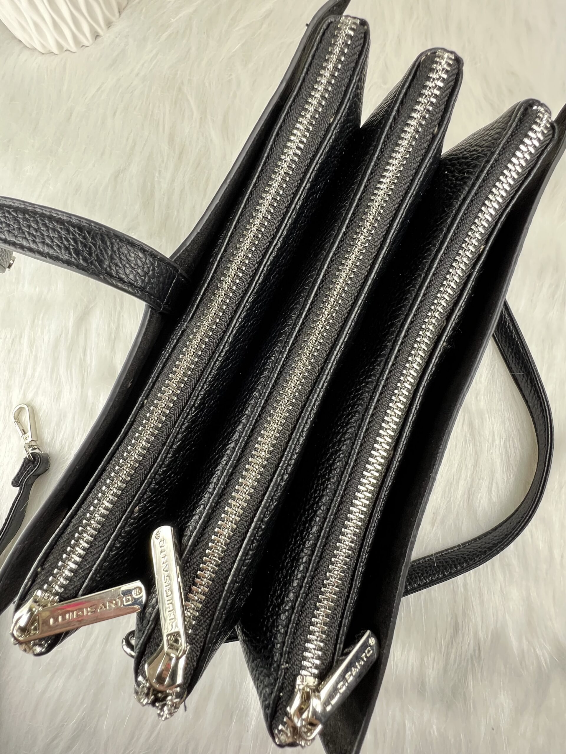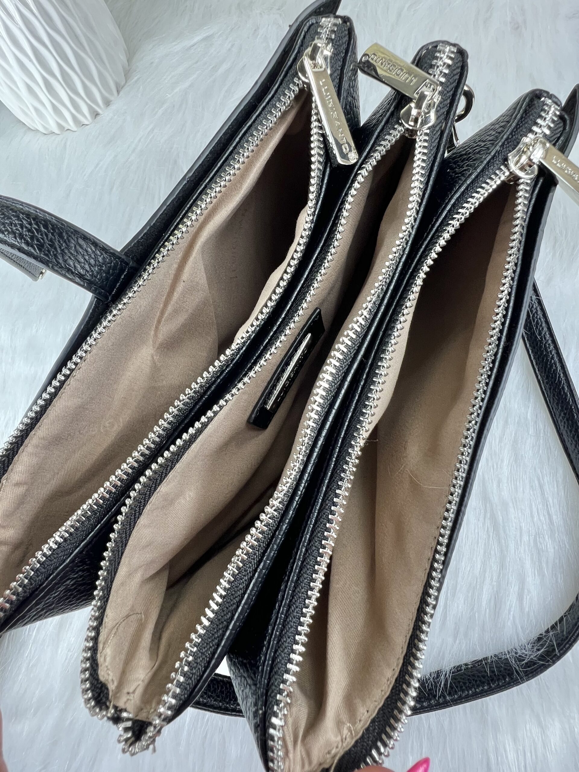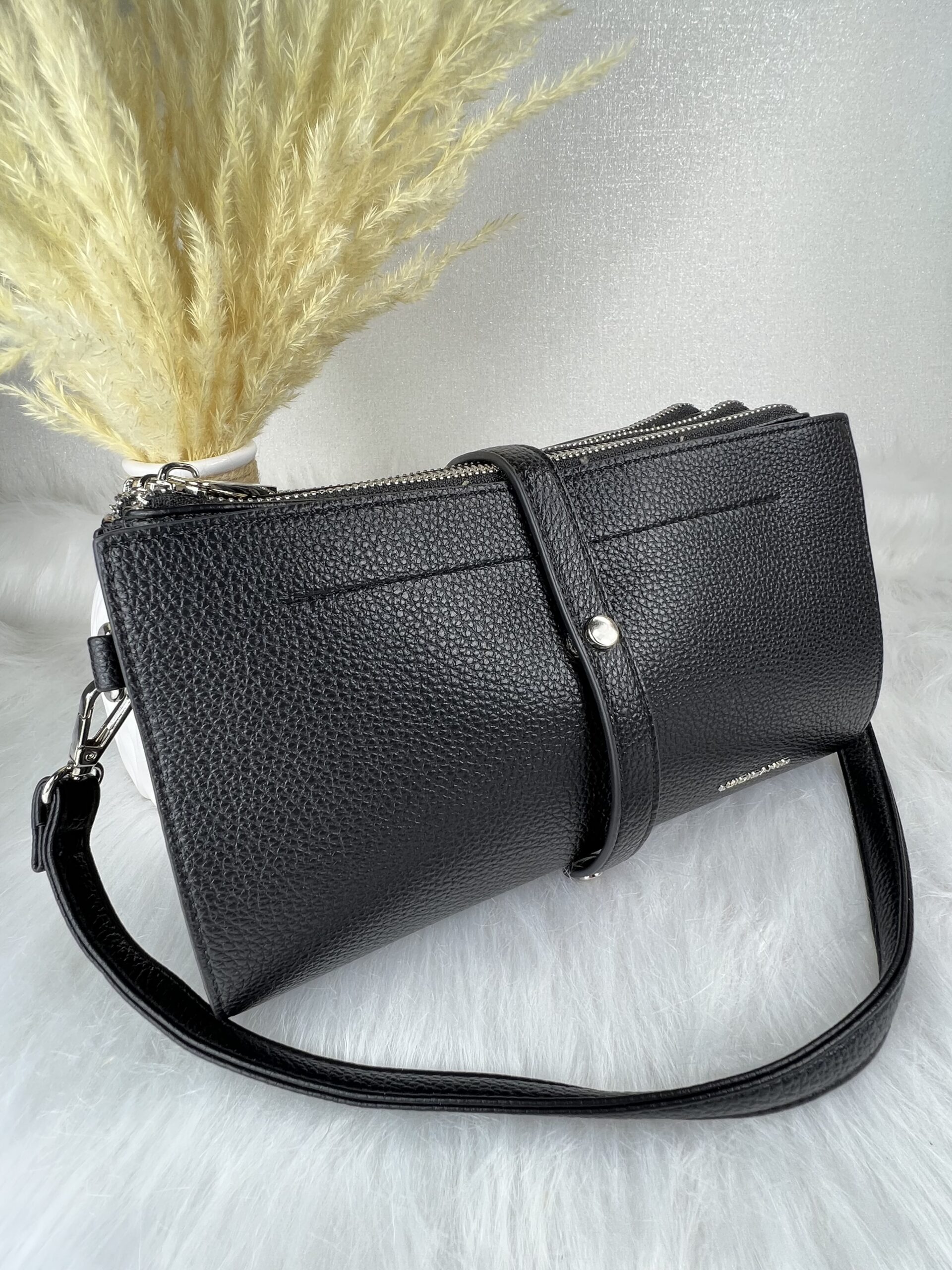 Pehme ja stiilne must kott, mis hoiab kõik vajalikud asjad ilusti korras.