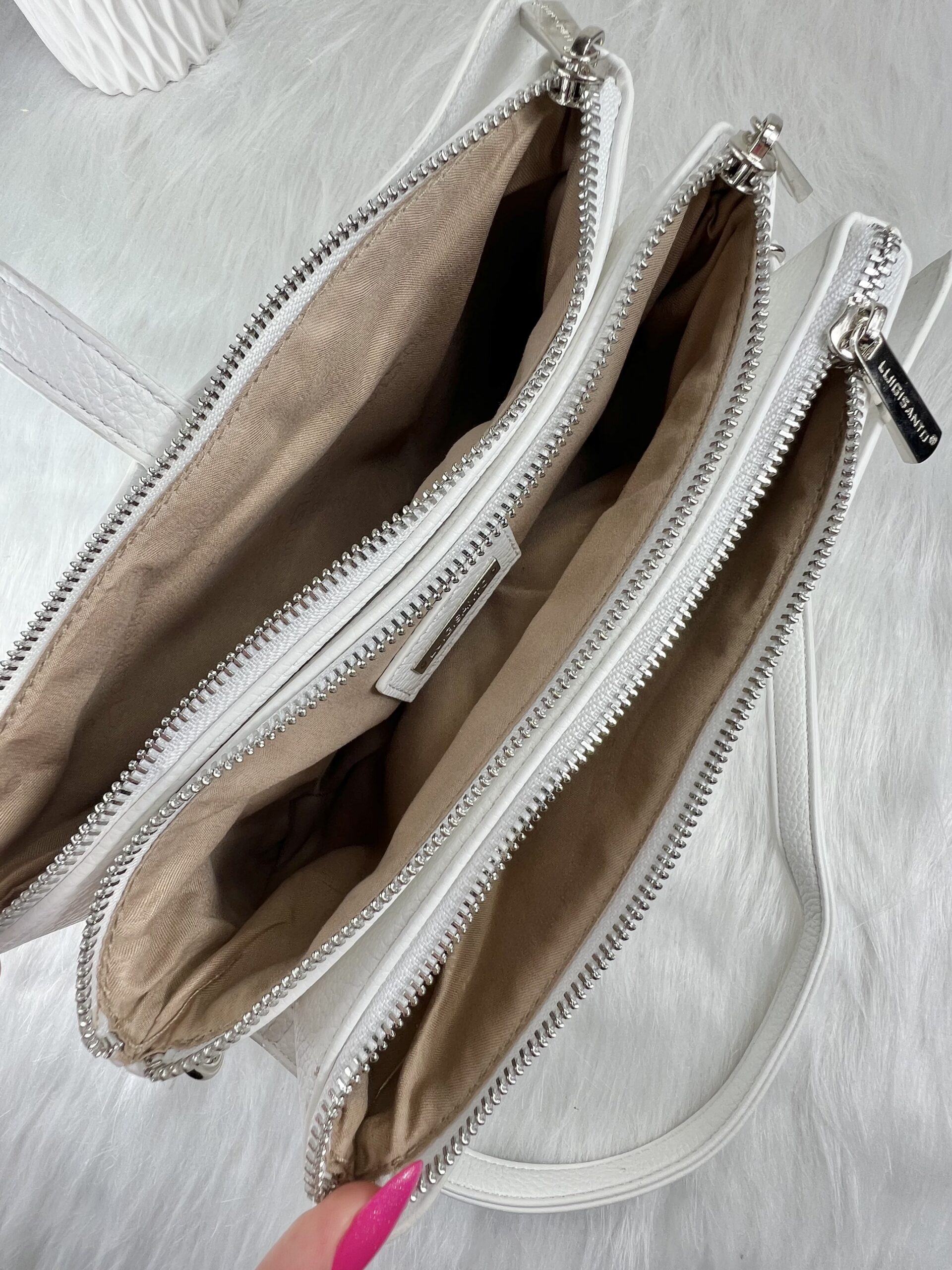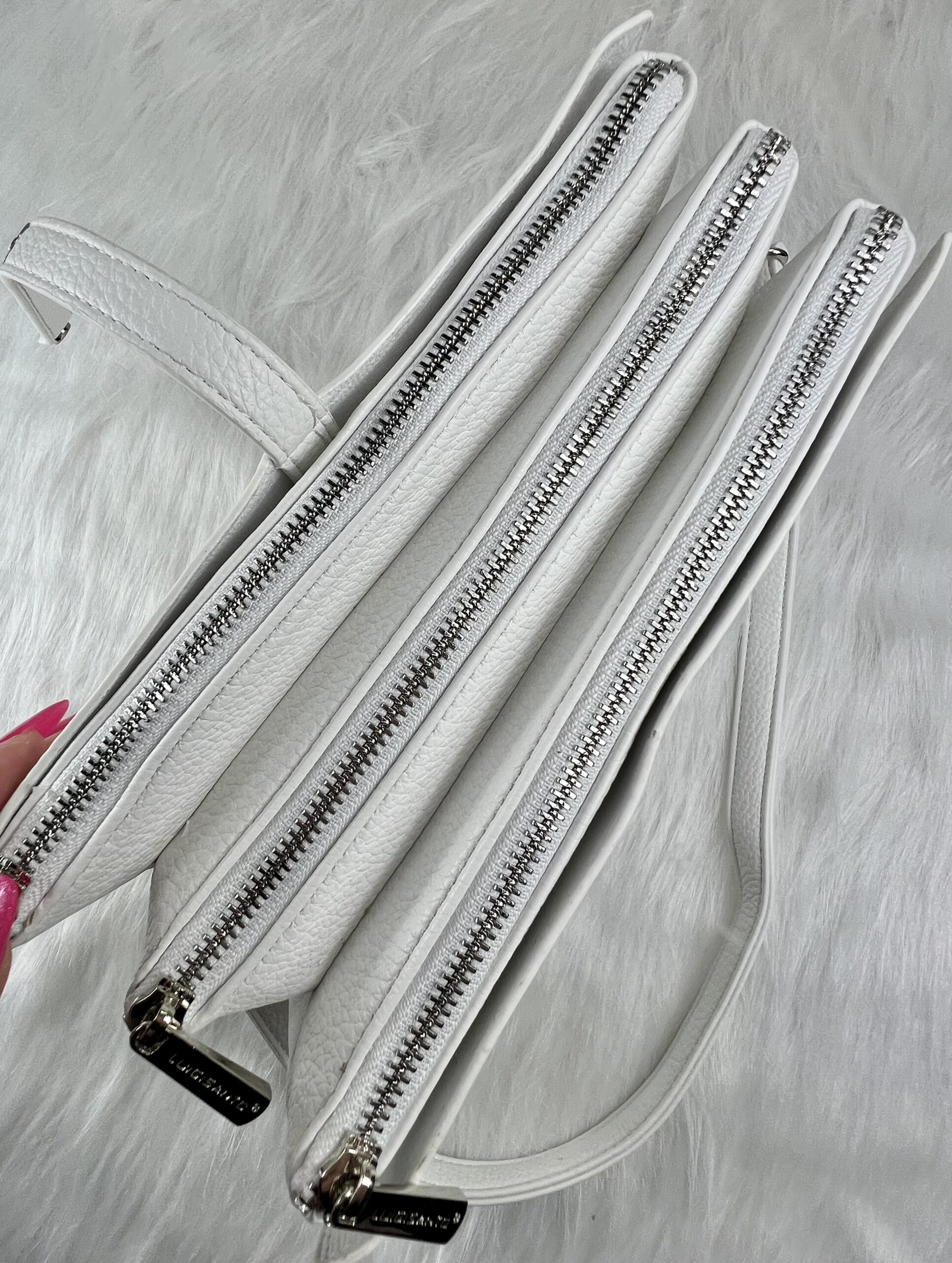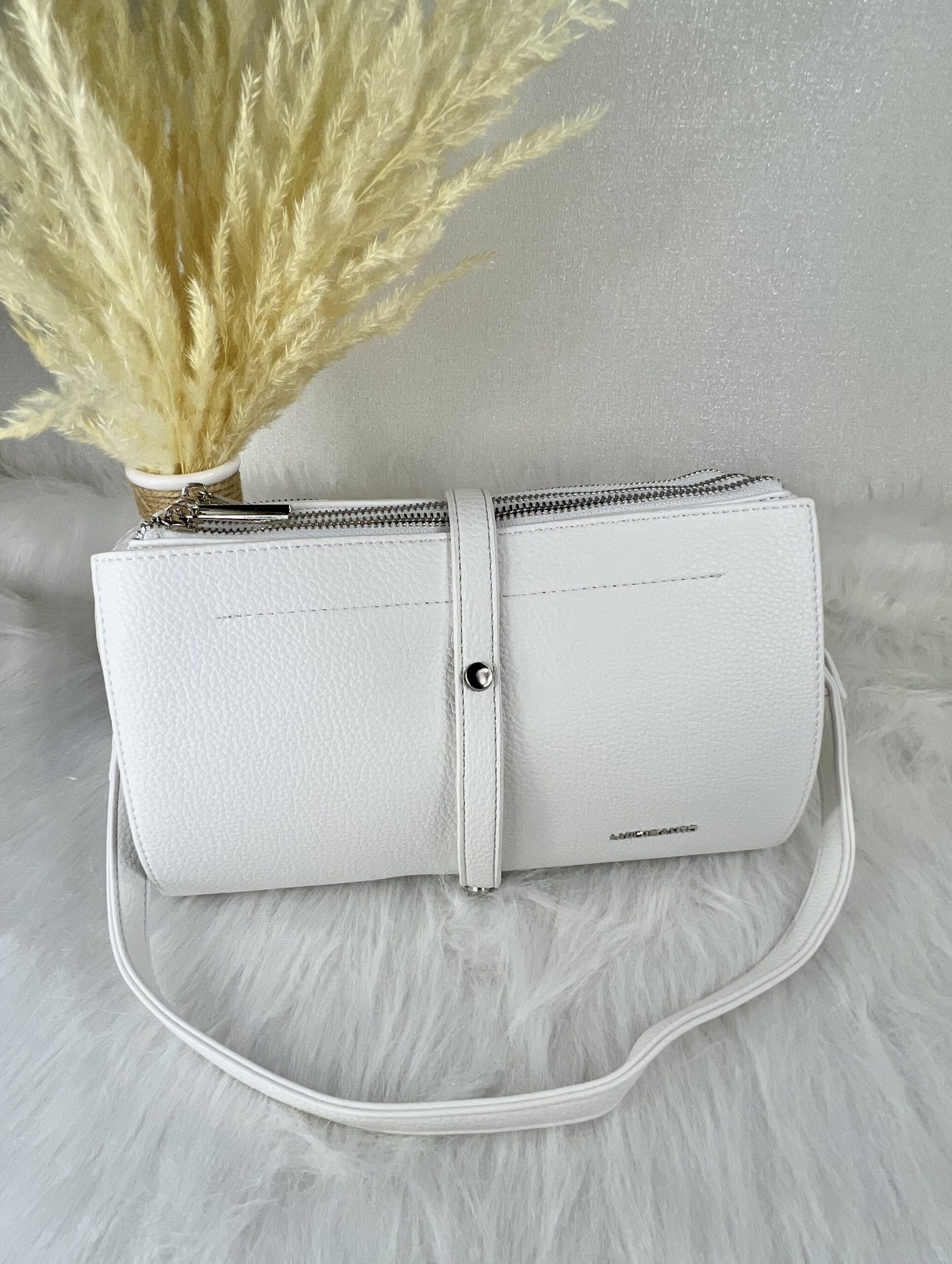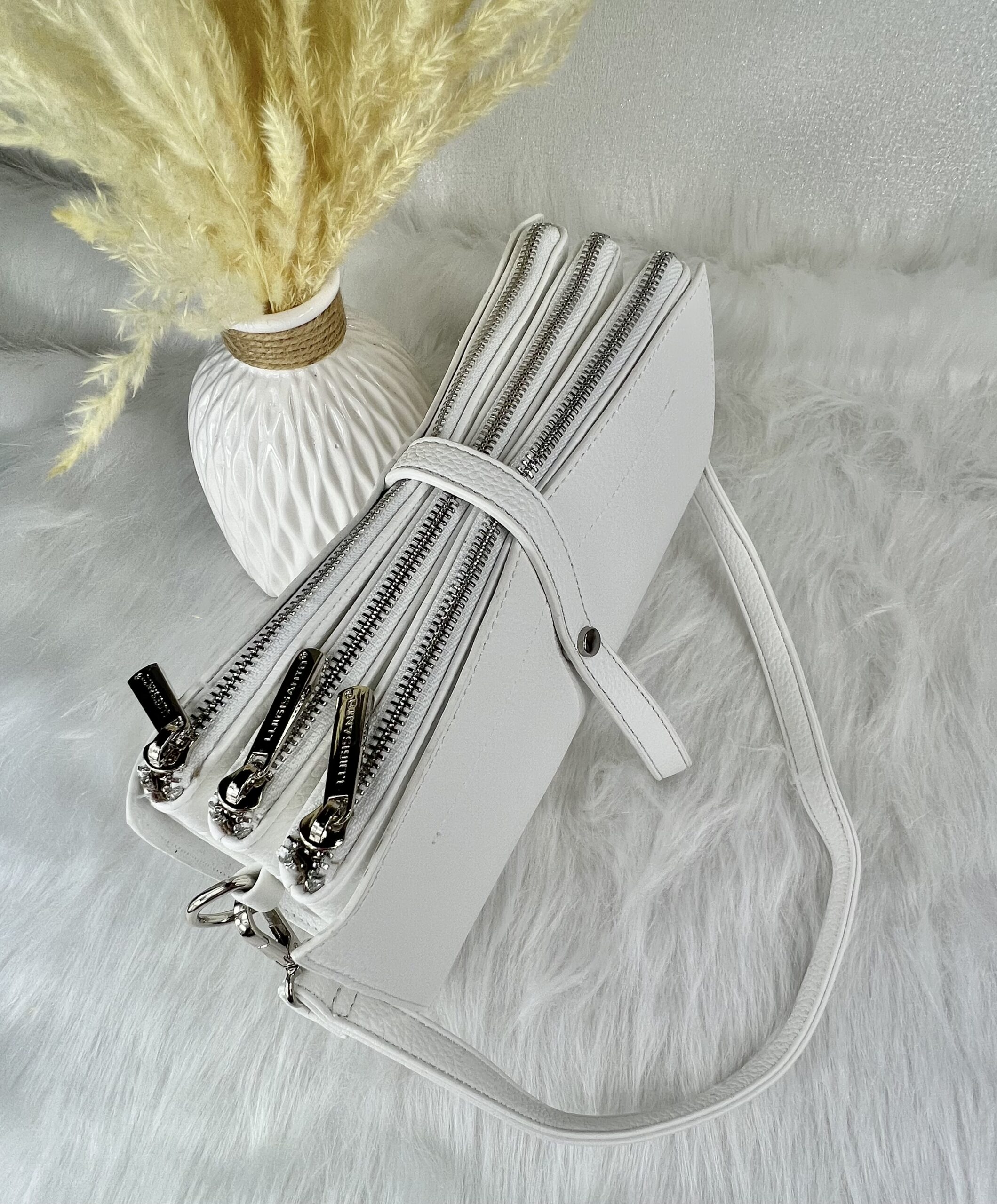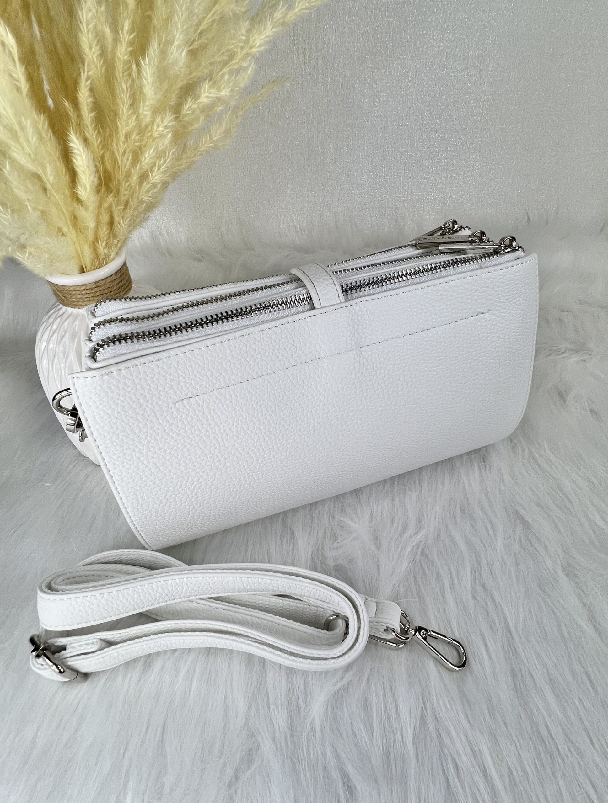 Pehme ja stiilne valge kott, mis hoiab kõik vajalikud asjad ilusti korras.